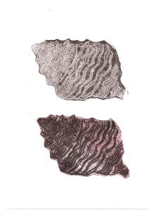 Shells, cones and seeds – some new monoprints